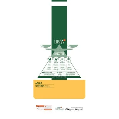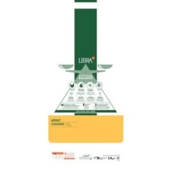 Libra Adult contiene pollo, una carne sabrosa, digestible y fuente de proteína animal que gusta hasta a los perros más sibaritas. La composición contribuye a la salud de los dientes y de los huesos, así como al fortalecimiento de la masa muscular. Gracias a la alta digestibilidad de los distintos ingredientes, ayuda a hacer una mejor digestión. Por otra parte, el contenido de aceites y grasas proporciona ácidos grasos esenciales para mejorar la salud de la piel y el brillo del pelaje.
