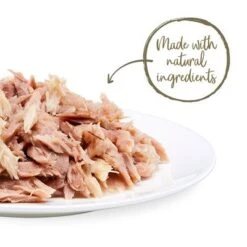 Applaws en gelatina contiene abundante taurina y arginina naturales, dos aminoácidos esenciales para los gatos; no se emplean aditivos y tampoco contiene cereales, por lo que es un alimento apto para gatos con sensibilidad alimentaria.