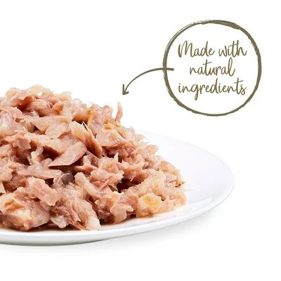 Deliciosa comida húmeda opara gatos adultos, elaborada con ingredientes naturales de excelente calidad: pescado procedente de la pesca sostenible y carne de pollo de corral de crianza en libertad a los que no se les suministran ni hormonas ni antibióticos. La carne de pollo, además, proporciona proteÃnas con escasa materia grasa.