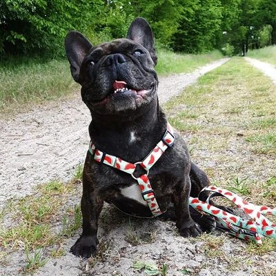 Arnés para perros ajustable en 4 posiciones. De neopreno y poliéster, muy resistente, estructura de 2 capas. Con 2 anillas semicirculares y cierres de clic extrafuertes. Diseño: sandÃas.
