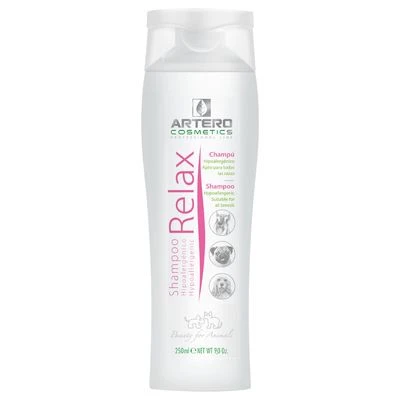 Las vitaminas y proteÃnas favorecen el equilibrio cutáneo natural y fortalecen la barrera de la piel para que proteja contra agentes patógenos externos. El aloe vera refresca y ayuda a la regeneración de la piel. Con Artero relax puedes cuidar del pelo y de la piel de tu perro al mismo tiempo.