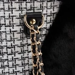 - Elegante combinación de tejidos: tweed y felpa