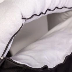 Cama para perros de bonita tela de tapicería. Con borde muy alto, acolchado grueso, cojín firmemente cosido y base antideslizante. Lavable.