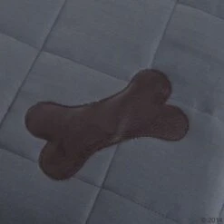 Cojín para perros suave y fácil de limpiar. Aisla del frío del suelo y protege los muebles de los pelos. Color gris con un detalle de hueso en color marrón.