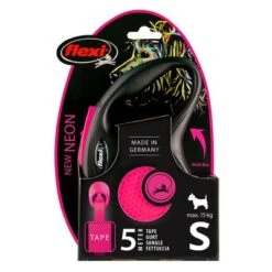 Con la correa extensible flexi New Neon con cinta conseguirás una mejor visibilidad incluso en la oscuridad y en los días nublados. Es de color negro y rosa neón y cuenta con adhesivos reflectantes. Gracias a su longitud de 5 m, tu perro disfrutará de una gran flexibilidad y libertad.