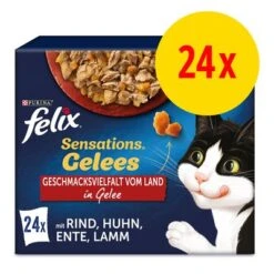 Comida completa para gatos elaborada con una deliciosa receta en salsa o gelatina. Felix Sensations ahora en Megapack. Carne tierna y deliciosa gelatina o salsa en prácticas bolsitas ¡para gatos exigentes!