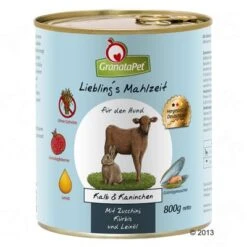 GranataPet Liebling’s Mahlzeit proporciona a tu perro una nutrición saludable, completa y equilibrada que satisface las necesidades alimentarias naturales de los perros. GranataPet no añade cereales a sus recetas, su alta proporción de carne suministra proteínas animales y resulta fácilmente digestible. El mejillón de labio verde es rico en glucosamina y en condroitina y favorece el desarrollo de huesos y articulaciones fuertes.