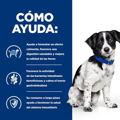- Alimento completo para perros adultos para aliviar los problemas de absorción intestinal agudos, compensar una digestión inadecuada, para la insuficiencia pancreática exocrina y como ayuda en situaciones de estrés, lo que conlleva una reducción del comportamiento correspondiente.