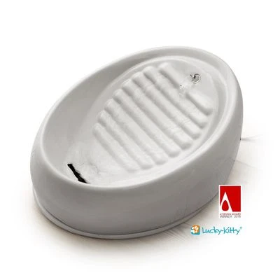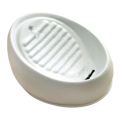 Bebedero de porcelana sanitaria resistente al lavavajillas, con 3 zonas para beber. Muy estable, no necesita filtro de recambio. Calidad verificada. Medidas: 30 x 23 x 14 (L x An x Al).
