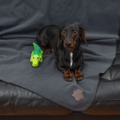 Manta práctica para perros, superficie suave de forro polar, protege el tapizado y otras superficies, aÃslante e impermeable, puede lavarse en la lavadores. Color: gris/negro