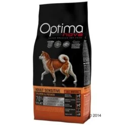 Optimanova Adult Sensitive con salm贸n y patatas ofrece un perfil nutricional equilibrado especial para perros con la piel, el pelaje o la digesti贸n sensibles. La f贸rmula especial es rica en vitamina D, combina una cantidad adicional de zinc y 谩cidos grasos y ayuda a tener una piel, un pelaje y unos dientes sanos. El aceite de pescado contiene 谩cidos grasos insaturados DHA y EPA que, adem谩s, fortalecen el sistema inmunitario y cardiovascular.