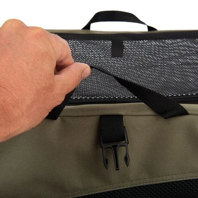 El transportÃn plegable Camo para perros es extraligero y puede plegarse. Incluye una bolsa de transporte. Esfácil de montar y es indeformable. Está hecho de material robusto y fácil de limpiar. La superficie de descanso se puede extraer y tiene 3 ventanas con rejilla (el la parte superior y en los laterales) que aseguran una ventilación suficiente. Puede abrirse por arriba y por los lados, según sea necesario.