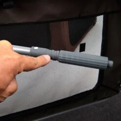 - Gran abertura frontal: puede cerrarse con cremallera, el tejido de red se puede enrollar y fijar con tiras de velcro